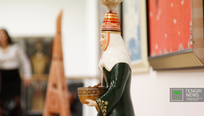 Произведения мастеров прикладного творчества наполнены символикой - от стилизованной рунической письменности до образов таких мифологических персонажей, как Умай и Тенгри.