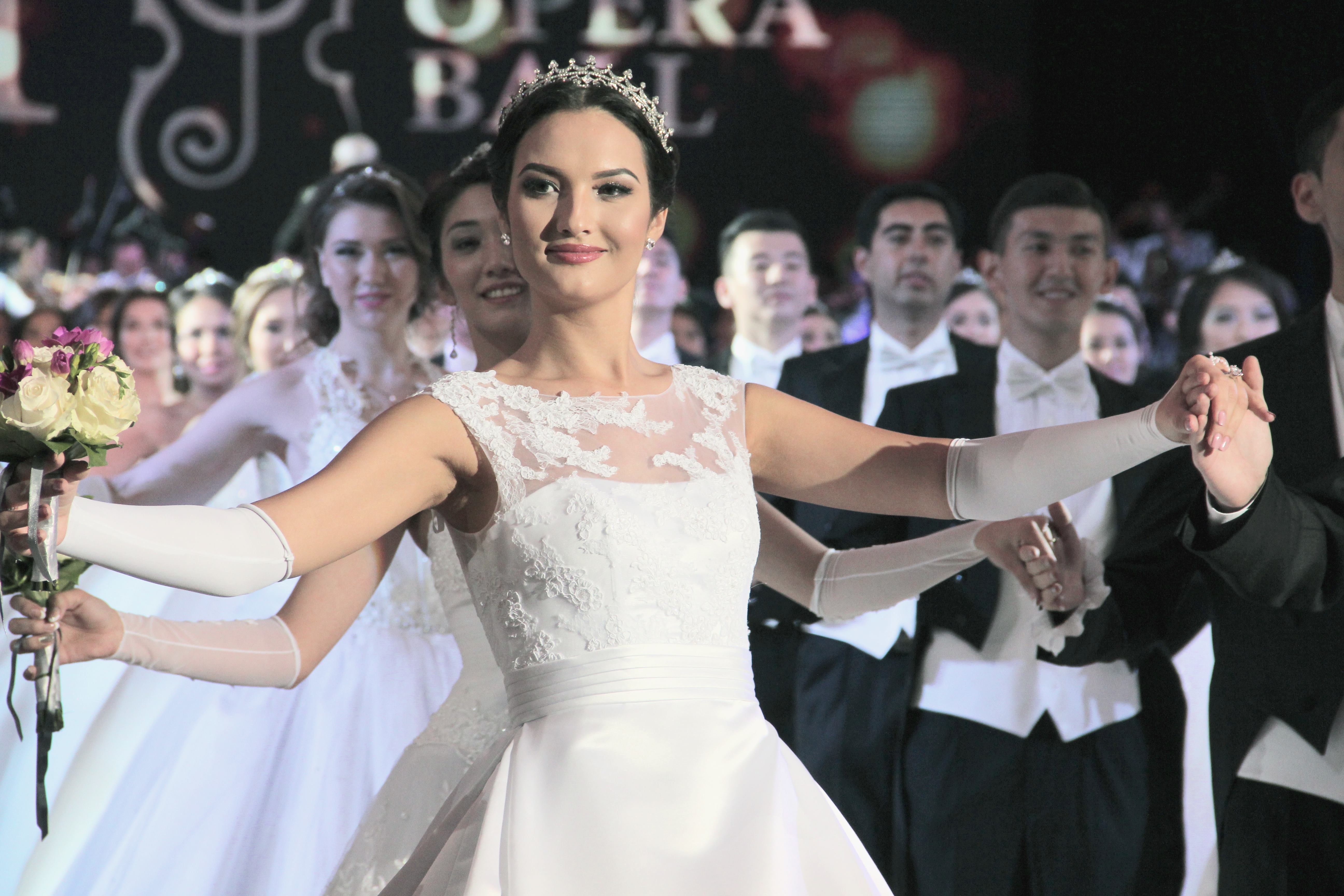 Не обошелся вечер и без торжественного полонеза от дебютантов, среди которых были "Мисс Казахстан-2014" Регина Вандышева, певец Диас Аблаев и "Мисс Алматы-2010" Салтанат Бекжигитова. Дебютанты открыли танцевальный вечер венским вальсом.