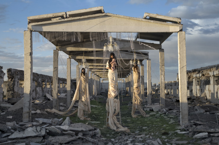 "Медиа видео и фотографии имели на меня большое влияние, они трансформировали мои отношения с окружающей средой, сделали меня наблюдателем бесконечных реальностей. Ткани, войлок, нити научили меня двигаться, объединять расстояния, создавать пространства. Это запутанный архитектурный материал, который может стать стенами, преградой, стать черной дырой, преломлять пространства без углов и квадратов; обернуться огромной завораживающей видеопроекцией", - поделилась Алмагуль Менлибаева.