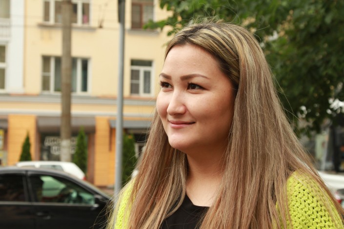 Алматинка Нина гуляла с внуками-дошкольниками Миланой и Максимом. Девочка первой обратила внимание на яркую картинку - бабушка тоже остановилась и рассматривает: "Хорошая работа. Мне очень нравится, что она соответствует названию улицы. Правда, Гоголь в каких-то очках суперсовременных... Наверное сейчас это модно. Милане понравилось, что именно сейчас рисуют".