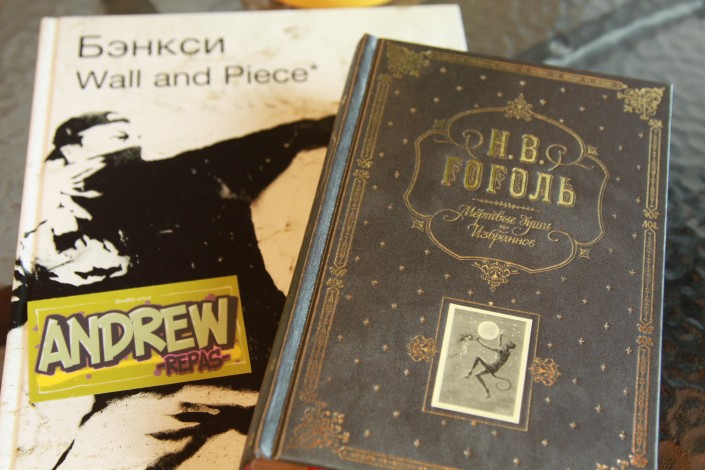 "Я сам пришел к магазину с этой идеей, - говорит автор граффити Andrew Repas. - Я заканчивал факультет дизайна и всегда хотел заниматься эстетизацией городской среды: вместо серых стен украшать город. Эту серую стену я заприметил давно - живу недалеко, часто прохожу мимо. И вот пришла идея: Гоголь на Гоголя, как раз на стене книжного магазина. Я пришел к руководству "Меломана" с тремя-четырьмя эскизами - они утвердили, я начал делать. От момента задумки прошел примерно месяц, с начала работ - неделя: с учетом погодных условий, как раз выпало на период дождей и ветра, рисовал с вышки - было небезопасно".