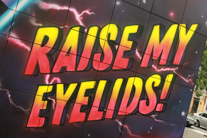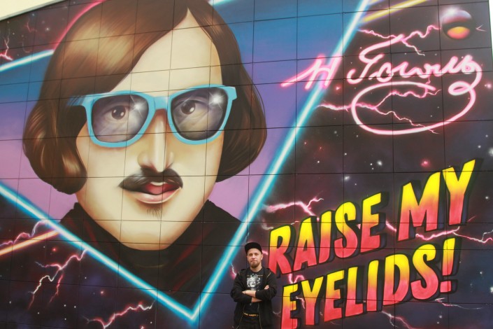 "Raise my eyelids". Гоголь на Гоголя появился в Алматы Стрит-арт-художник Andrew Repas. Фото Эльдара Устемирова