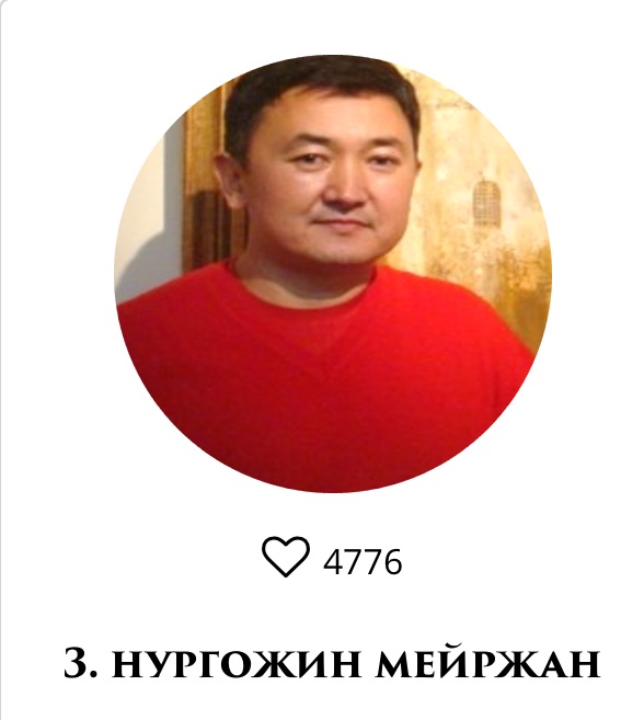 На третьем месте художник Мейржан Нургожин. Он родился 16 марта 1971 года. В 1990-м окончил Алматинское художественное училище имени Гоголя, затем в 1998 году - Государственную художественную академию имени Жургенова.