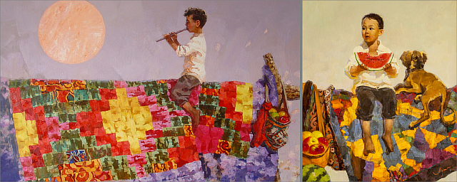 На втором месте сестры-близнецы Галия и Балхия Кусаиновы, родились 29 октября 1969 года. С 2003 года - члены Союза художников Казахстана.