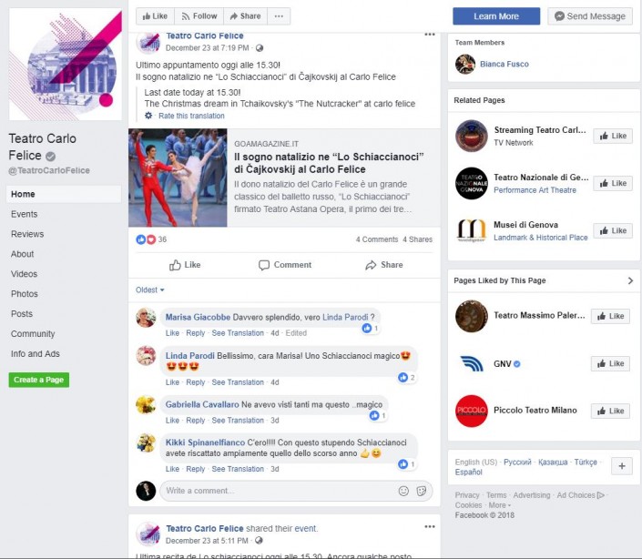 Щедро делились впечатлениями в социальных сетях итальянцы и испанцы. К примеру, поклонница казахстанской труппы Gabriella Cavallaro регулярно пишет посты и комментарии о выступлениях артистов "Астана Опера": "Идеальное исполнение, редкое, уникальное искусство! Поздравляем! Мы также придем на спектакль 13 января... Думаю, все будет превосходно, труппа из Астаны просто великолепна. (Parole sante! Una esecuzione perfetta, una arte rara, unica! Complimenti! Ci saremo il 13 ....penso sia bellissimo la compagnia di Astana sono bravissimi)".