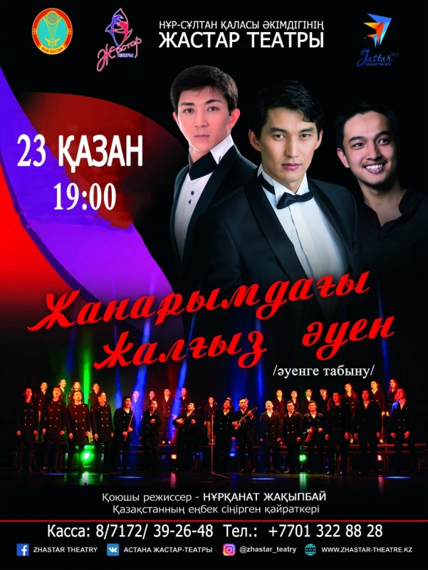 Также коллектив театра 23 октября в 19.00 проведет спектакль "Жанарымдағы жалғыз әуен" Жакыпбая. 24 октября в 11.00 часов представят сказку Омарова "Жеребеночек и волчонок".