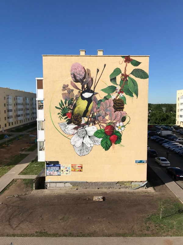Коллаж на тему природы появился на фасаде дома по улице С 409. Автор изображения - Евгений Ches.