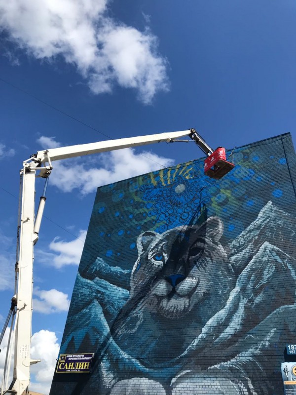 Эта работа Дамира Лотфуллина из Казани получила название "Белый хранитель". Ее уже можно увидеть на фасаде одного из домов по улице № 187.