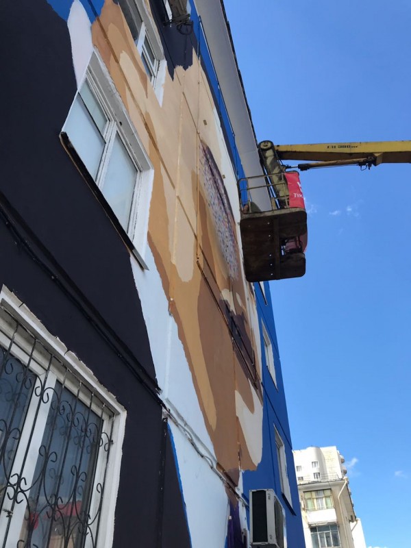 Изображение Сакена Сейфуллина уже появилось фасаде дома на пересечении улиц Сарыарка и Сейфуллина. Эту работу выполняют по задумке художников Арт-группы 310.