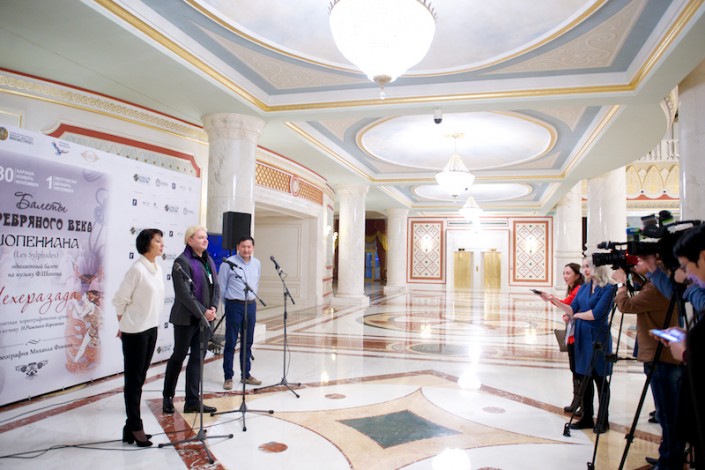 Во время беседы с журналистами балетмейстеры-постановщики Народные артисты России Алтынай Асылмуратова и Андрис Лиепа много шутили и с большим воодушевлением рассказывали о предстоящей премьере.
