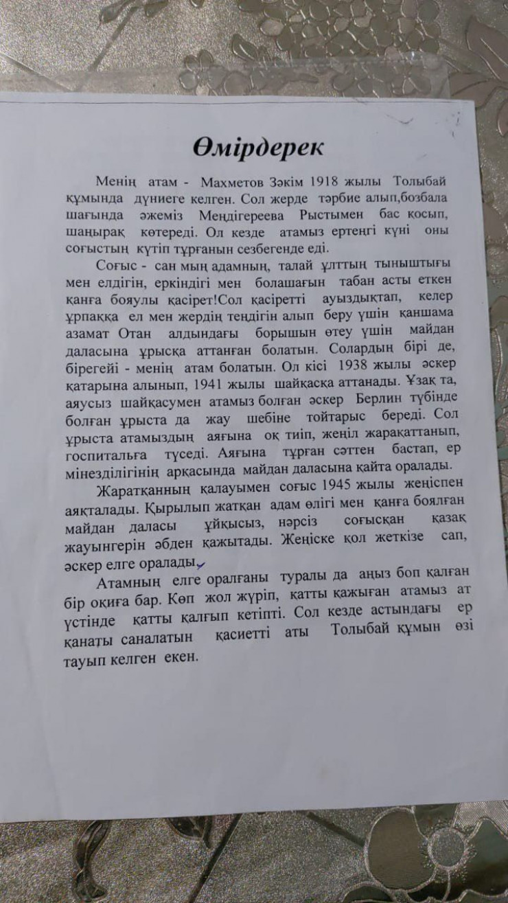 Махметов Зәкім 1918 жылы Атырау облысы, Индер ауданы, Елтай ауылында дүниеге келген. 1938 жылы әскер қатарына алынып, 1941 жылы соғысқа аттанады. Ленинградты азат етуде ерен ерлігімен көзге түсіп, Берлинге дейін барған әскер отрядының шебінде болған. Берлин түбінде болған ұрыста да жау шебіне тойтарыс беріп, аяғын оқ тиіп, жеңіл жарақаттанып госпитальға түскен. Жарақаты айыққан соң, қайтадан майдан шебіне аттанған. Соғыстан аман-есен оралған.