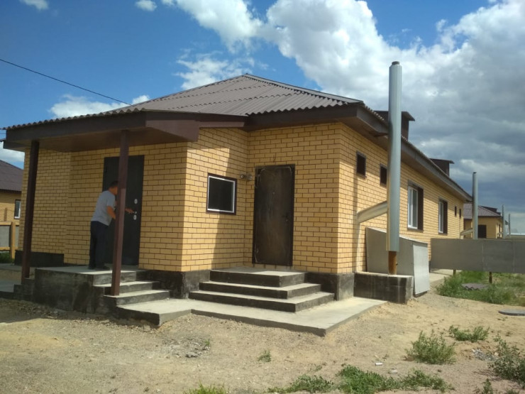 По словам начальника участка Жениса Сегизбаева, планируется построить 70 домов. "Сегодня возведено одиннадцать домов 2-квартирных и три 1-квартирных. Отопление в домах как газовое, так можно и твердым топливом. Стеклопакеты тройные, санузел в доме, пол утеплен", - рассказывает Ж.Сегизбаев.