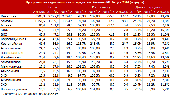 В Алматы доля "плохих" кредитов сократилась почти на 48 миллиардов тенге (2,6 процента), а в Астане - на 37,4 миллиарда тенге (30,7 процента за месяц). По данным портала, мегаполисы сократили за месяц просроченную задолженность по кредитам в совокупности на 85 миллиардов тенге. В остальных регионах Казахстана объем просроченных кредитов сократился незначительно.