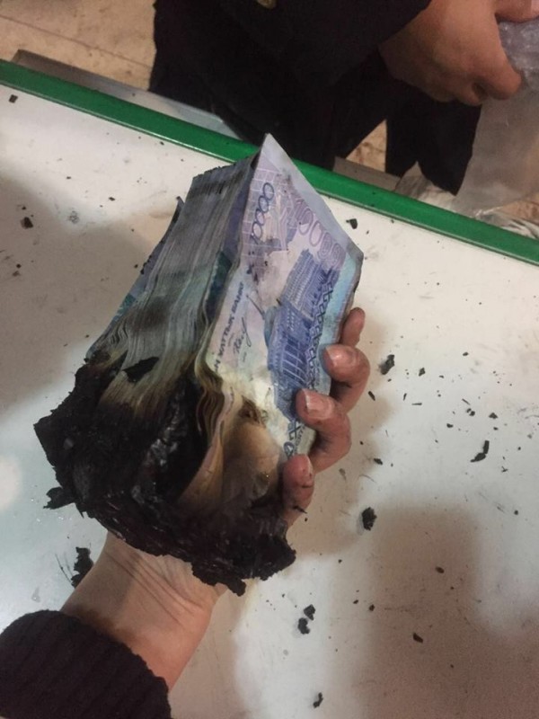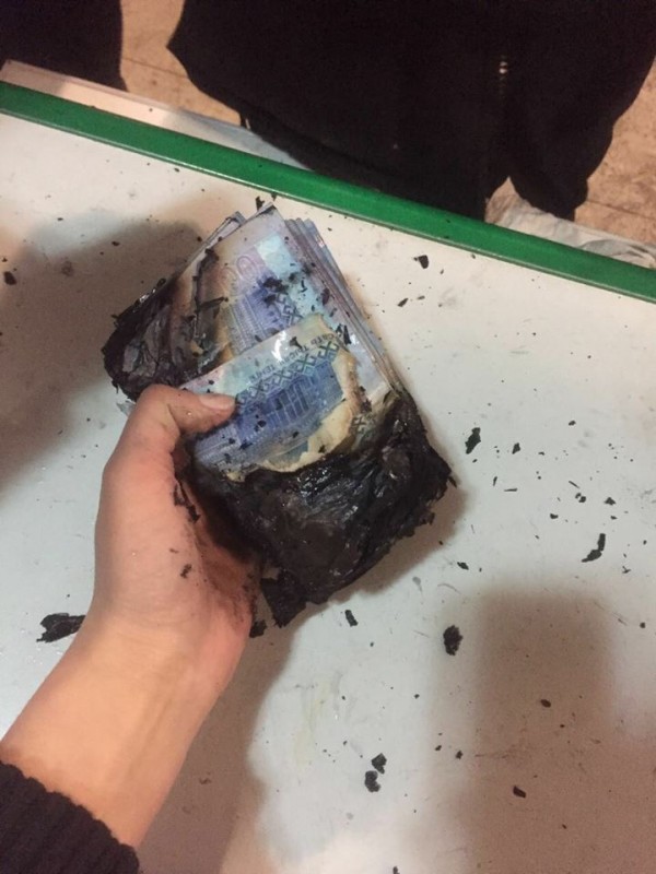 Фото обугленных купюр прокомментировали в ДВД Алматинской области Фото Facebook.com