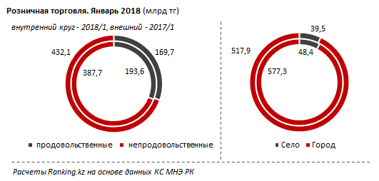 На сельскую местность пришлось всего 8 процентов официальной розничной торговли, против 7 процентов в январе 2017 года.