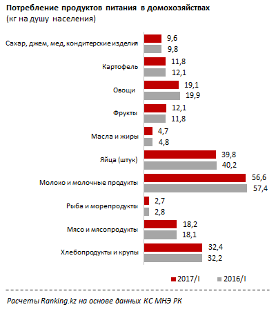 Наиболее заметно выросли траты казахстанских семей на мясо и мясопродукты - если в первом квартале 2016 уходило порядка 14,6 процента потребительского бюджета, то в этом году доля выросла до 15,3 процента. При этом рост этот, как поясняется в исследовании, "позитивен" - казахстанцы в этом году увеличили потребление мяса на 0,5 процента, до 18,2 килограмма на душу населения.