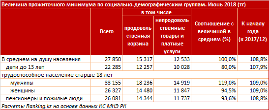 По итогам июня прожиточный минимум в Казахстане составил 27,85 тысячи тенге в среднем на душу населения - это на 5,2 процента больше, чем в мае, на 8,8 процента больше показателей начала года и на 10,9 больше по сравнению с июнем прошлого года.