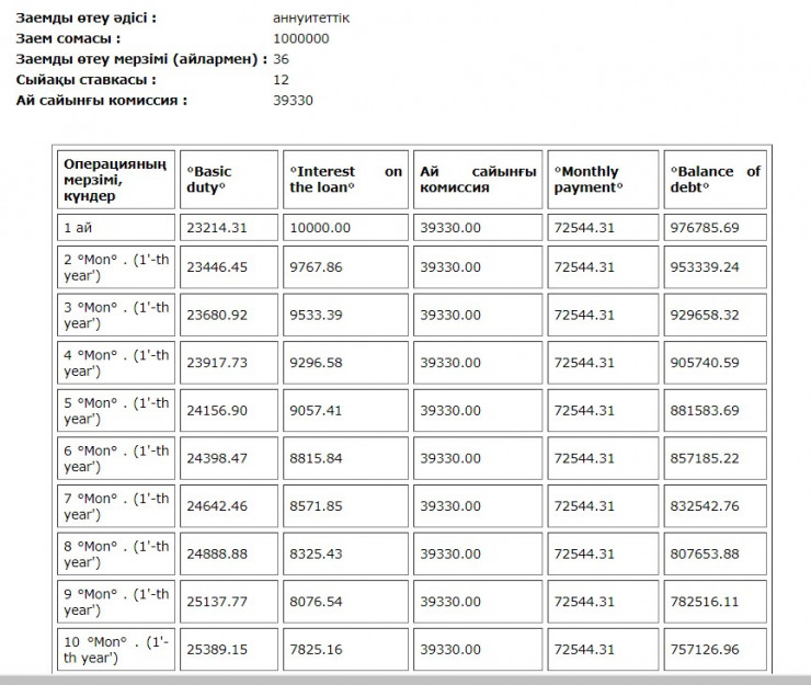 Дегенмен, Түймебаевтың айтуынша, аннуитет төлемде ай сайынғы әр сомада қарыздың өзі мен оның пайызы қосылып тұрады. Осылайша, бастапқыда кредиттің тек пайызы төленеді де, соңына қарай ғана қарыздың өзі өтеледі дейді.