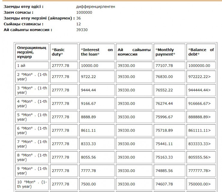 Ал кредитті төлеудің екінші түрі дифференциалда, оның айтуынша, бастапқыда бірнеше ай бойы қарыздың қомақты сомасын төлеп отыру керек болады. Сондықтан да көбі шамасына қарайлап, төлемнің аннуитет түрін таңдайды екен.