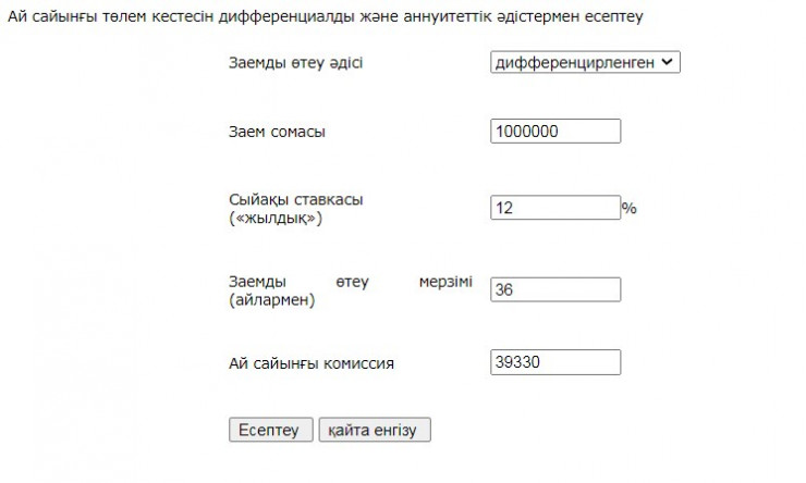 Дифференциал төлемді есептеу жолы: