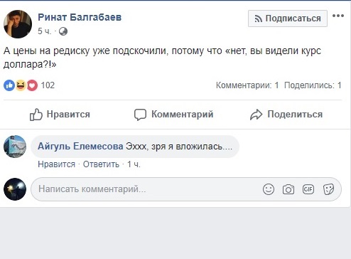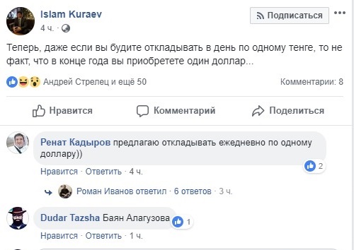 Так же остроумно ситуацию с тенге описал заместитель председателя правления KASE Андрей Цалюк.