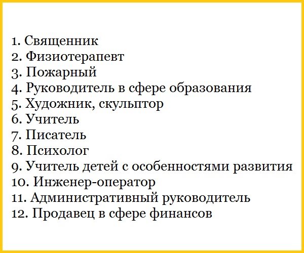 А вот как выглядит список профессий, обладатели которых "счастливы".