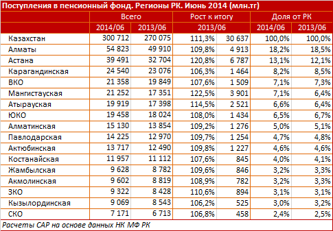 Объем пенсионных отчислений в Казахстане за год (к июню 2013 года) вырос на 11 процентов, сообщает Ranking.kz. При этом отмечается, что за полгода пенсионные отчисления в стране превысили 300 миллиардов тенге.