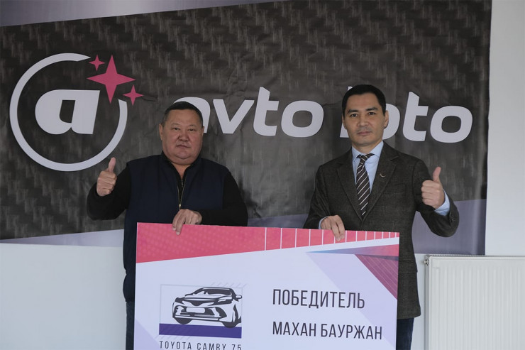 Его встретили в офисе Avto Loto и вручили сертификат победителя, после чего отвезли в Тойота Центр Жетысу, где победитель получил свой приз - новую Toyota Camry 75.