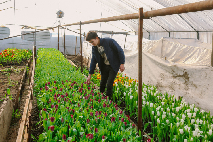"После тюльпанов мы будем выращивать в теплице розы, петуньи и бархатцы. Это тоже выгодно, но такую прибыль сразу мы получаем только раз в году, 8 Марта", - заключает он.