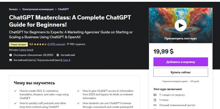 Лэнс Джанк протестировал способности нейросети почти сразу после ее выхода. Молодой маркетолог сразу понял, что это "нечто удивительное". Через несколько недель 23-летний американец уже записал курс под названием "ChatGPT: полное руководство ChatGPT для начинающих".