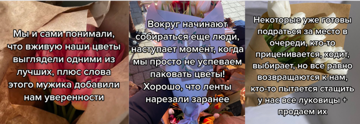 "Первые 200 штук за два часа продали. 7 марта с 22:00 до 00:00 ночи. А вот вторую часть мы продали за 2,5 часа примерно днем. И третий раз мы вышли примерно с 18:00 и до 23:00 и продали оставшиеся 200 штук", – делится автор.