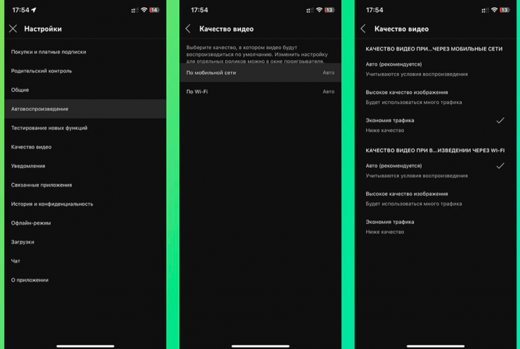 - Как настроить: в приложении YouTube перейдите в настройки, отключите опцию "Автовоспроизведение" и снизьте качество роликов при подключении по мобильной сети в разделе "Качество видео".