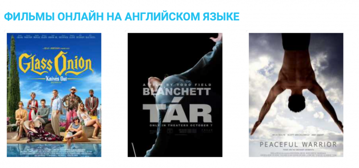 На этом портале легко найти интересный фильм в оригинальной озвучке. Одной из особенностей является вкладка с функцией сохранения новых слов и фраз и автоперевода слов, которые открываются при просмотре фильма. Отметим, что при использовании этого сервиса нужно включить блокировку рекламы.