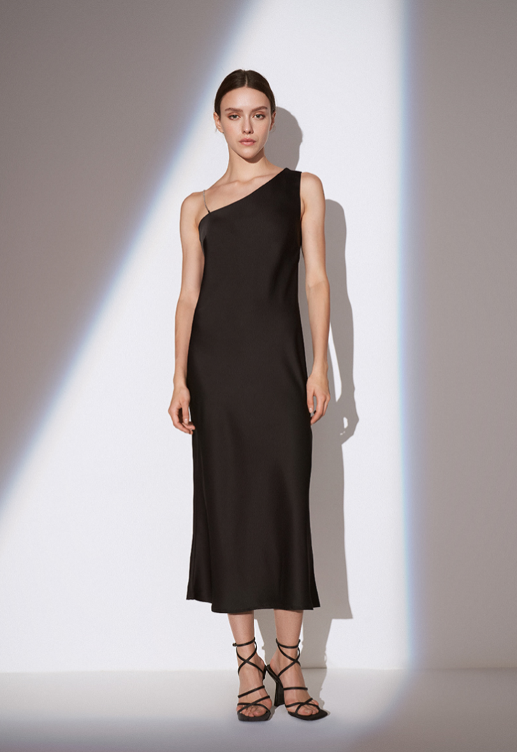 Черное платье из сатина – идеальный вариант на вечер. Если добавить акцентный аксессуар в виде массивных сережек или клатча со стразами, то наряд заиграет праздничными красками. Платье-комбинацию из сатина можно отыскать в массмаркете по приемлемой цене. Например, в Zara такой выбор обойдется в 17 990 тенге.