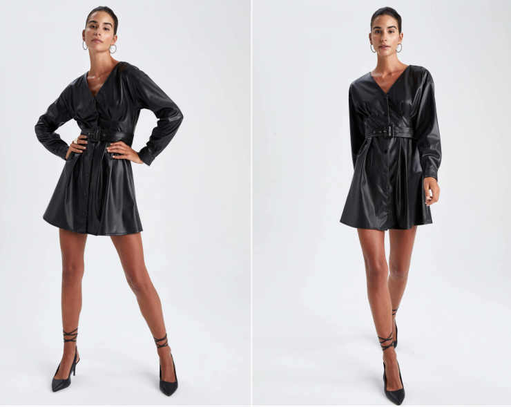 Наряды из кожи стали любимчиками не только самых дерзких, но и самых стильных. Не раз в них появлялась певица Шер, кожаные наряды также любят Ким и Хлои Кардашьян. Ведь на фотографиях они смотрятся весьма выигрышно. Однако звезды смело экспериментируют с длиной и фасоном, мы же предлагаем остановить выбор на маленьком черном платье из экокожи. Его можно отыскать в DeFacto за 16 990 тенге.