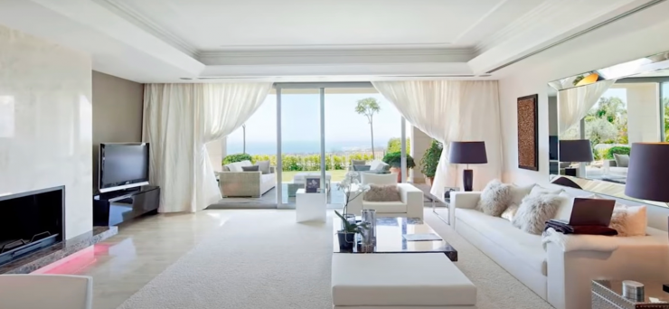 Сама звезда не раз показывала его в социальных сетях, где по фрагментам видео был виден светлый интерьер комнат, панорамные окна, просторная гостиная и кухонная зона. Также в доме имеется несколько спальных комнат и два цокольных этажа, где расположены два гаража и мини-футбольное поле.