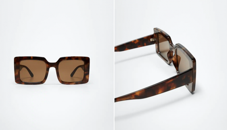 Очки в широкой и актуальной оправе в темно-коричневом цвете с едва заметным леопардовым принтом представлены в Mango. Купить их можно за 11 990 тенге.