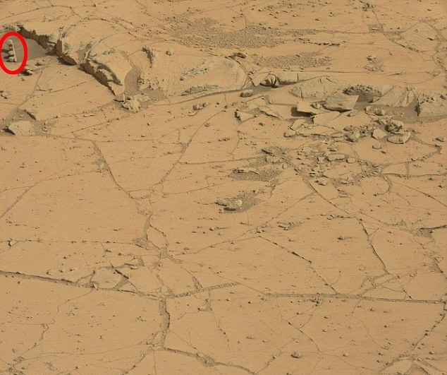 Что касается "марсианского светофора", то первым его рассмотрел британский журналист Джо Уайт. Обнаруженный им объект представляет собой четыре стоящих друг на друге камня. По оценке журналиста, длина "светофора" может составлять примерно 30 сантиметров.