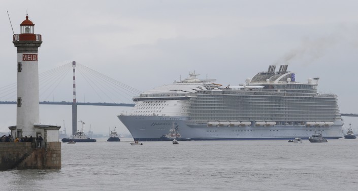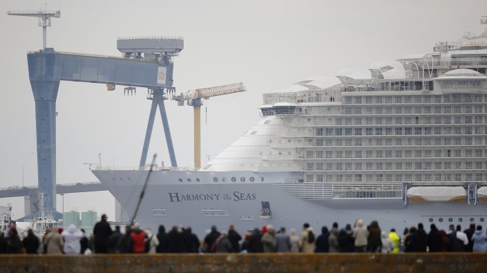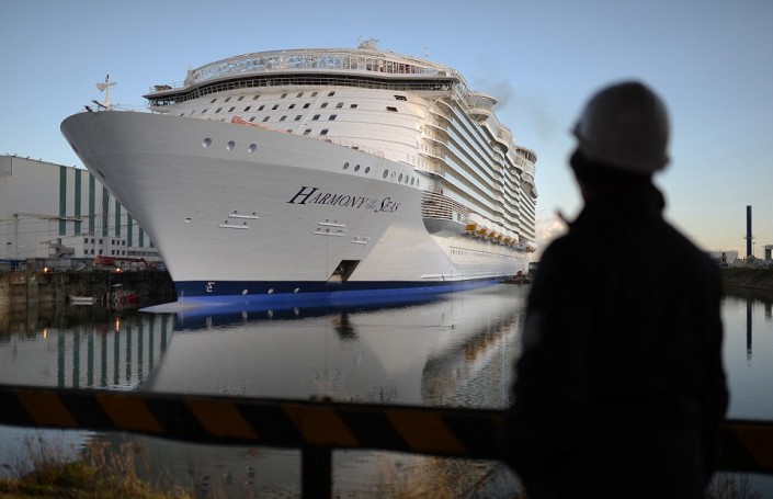 Во французском порту Сен-Назер спущен на воду круизный лайнер "Гармония морей" (Harmony of the Seas), который на сегодняшний день является самым большим в мире пассажирским судном, сообщает The Telegraph