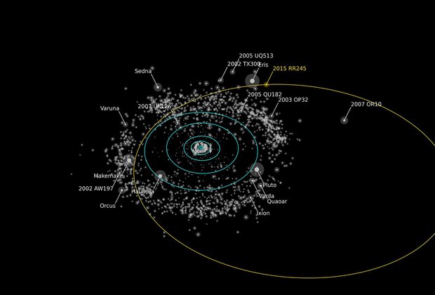Как сообщается, небесное тело 2015 RR245 движется вокруг Солнца по вытянутой траектории на расстоянии 34-120 астрономических единиц с периодом 730 лет. Радиус карликовой планеты оценивается в 350 километров.