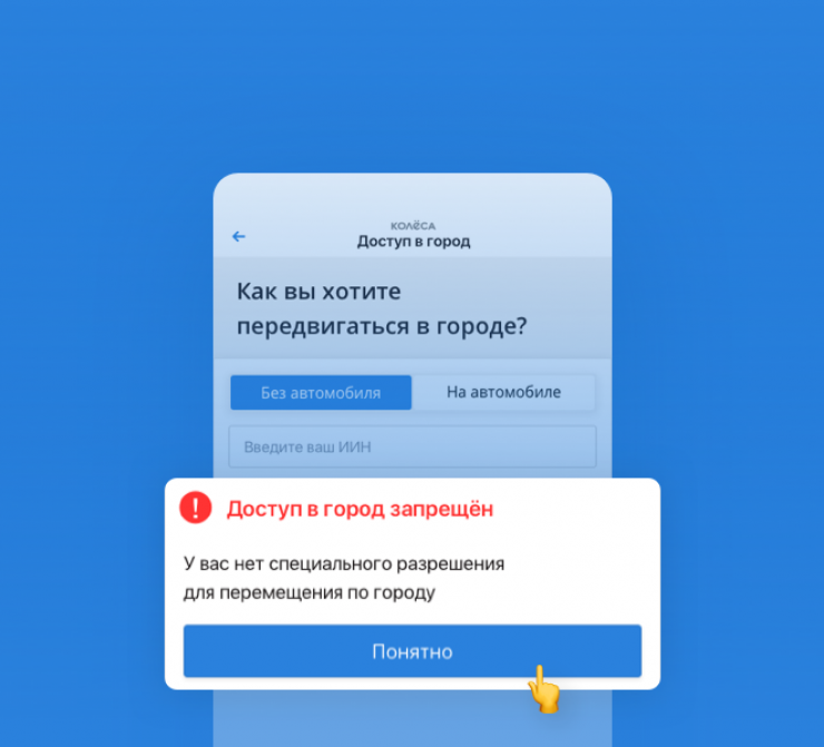 В меню приложения Kolesa.kz появится новая кнопка "Доступ в город".