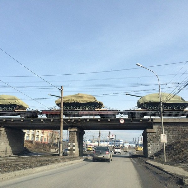 Ранее в Кремле обещали показать танк "Армата" на военном параде 9 мая на Красной площади. Очевидно, что танки начали перегонять с полигона в Москву.