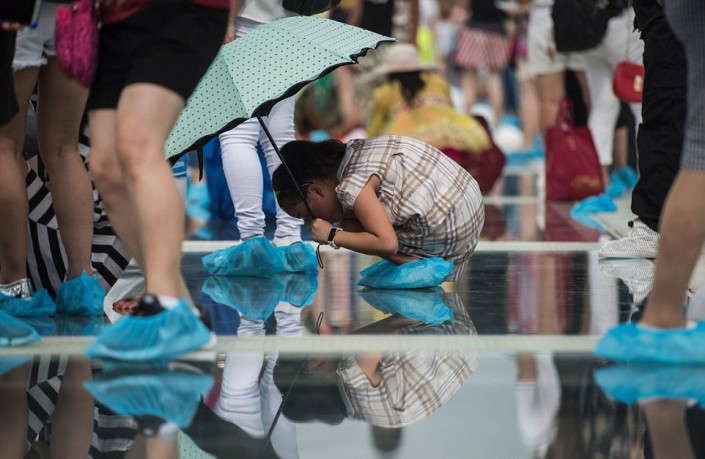 На церемонию открытия собралась огромная толпа. Несколько тысяч человек пришли, чтобы первыми ступить на прозрачную конструкцию, несмотря на довольно дорогой входной билет (138 юаней или около 20 долларов). Прежде чем пустить людей на мост, организаторы продемонстрировали прочность стеклянных панелей ударами кувалды.