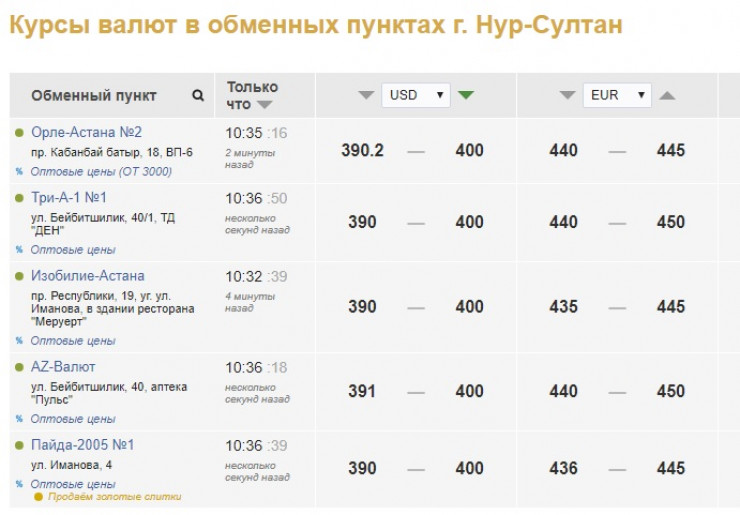 Как сообщается на сайте kurs.kz, в обменниках Нур-Султана и Алматы продают доллар по 400 тенге.