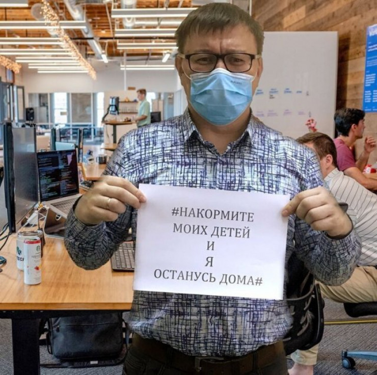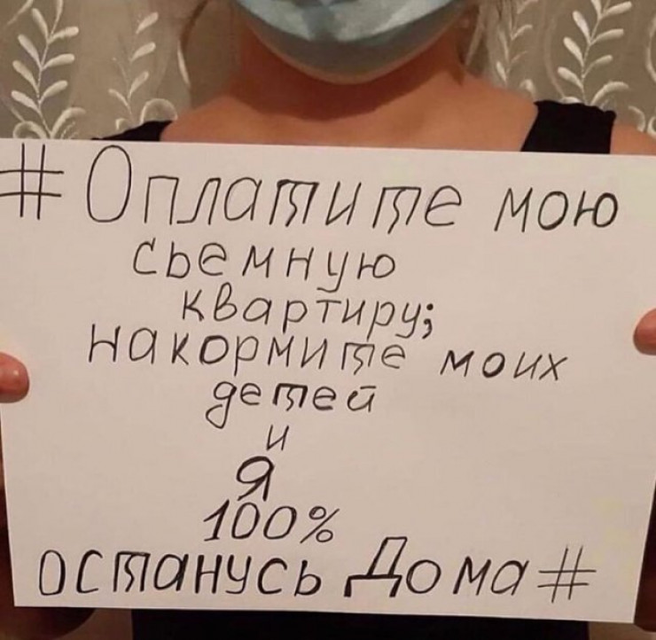 Интернет қолданушылары әлеуметтік желіде өз суреттерін жүктеп жатыр. Басқа суреттерден басты айырмашылығы мұнда бәрі плакат ұстап тұрады. Плакатта биліктің "Үйде отырыңдар!" деген бұйрығына қарсы пікір жазылған. Онда "Балаларыма тамақ беріңдер, ал мен үйде отырамын!" деген жазба бар.