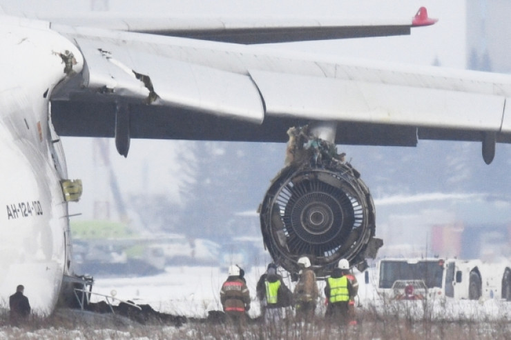 "Самолет авиакомпании "Волга-Днепр" Ан-124 после взлета по маршруту Новосибирск - Вена совершил вынужденную посадку. В связи с имеющими неполадками в двигателе #2 экипаж принял решение о возврате в аэропорт вылета. При приземлении произошло выкатывание воздушного судна за пределы взлетно-посадочной полосы. По предварительной информации, при посадке произошло повреждение пневматиков и левой основной стойки", - сказала представитель Росавиации.