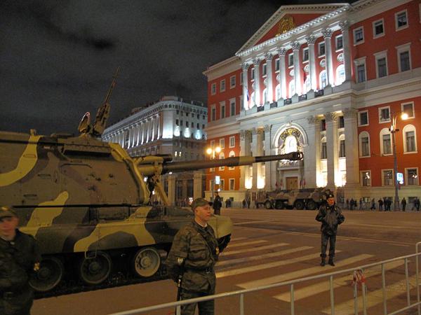 Помимо грузовиков в центр Москвы в субботу вечером заехала тяжелая военная техника. Об этом сообщают очевидцы и публикуют фото техники в соцсетях. Главный редактор радио "Эхо Москвы" Алексей Венедиктов предположил, что Кремль таким образом готовится к параду в честь празднования годовщины присоединения Крыма.