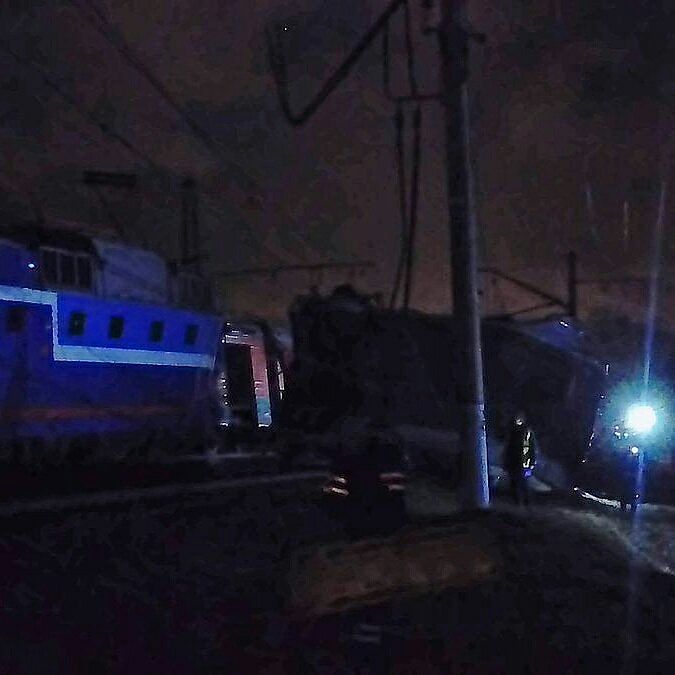Как говорят очевидцы, от столкновения электрички и поезда вагон электропоезда оказался разорван пополам. Половина его одним краем осталась лежать на рельсах, а другая попала в овраг.