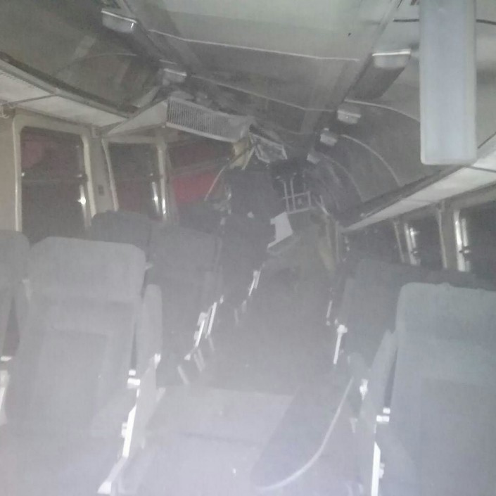 В Сети также появился ролик, снятый пассажиркой в электричке. Действие происходит перед столкновением и сразу после него.