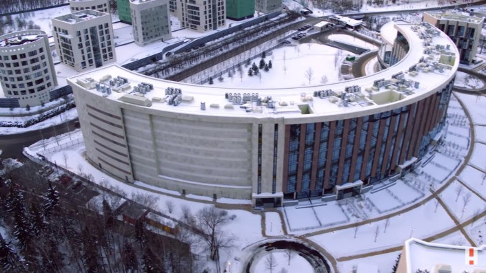 При этом сюжет в основном был посвящен не самому дому, а элитному жилому комплексу "Сколково-парк", расположенному неподалеку. А именно странным архитектурным решениям, которые использовались при строительстве комплекса.